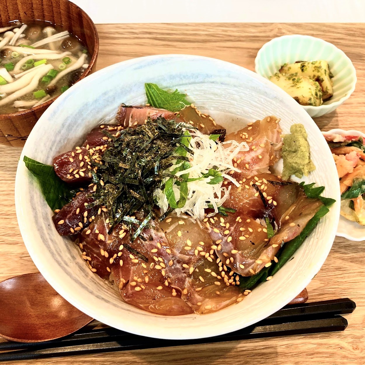 今日も行ってきた。目玉の鰻丼定食、1,380円を注文した。三河産の鰻とは良心的である。どの定食にも具だくさんの味噌汁と小鉢2品が付いている(日によってはデザートも)。これまでに注文した食事は以下の通り。この店をマイ食堂に指名してもいいと思うほど変化に富んでいて飽きない。