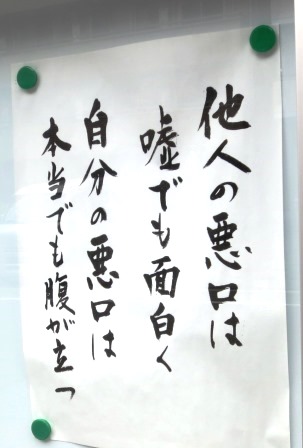 「他人の悪口は嘘でも面白く、自分の悪口は本当でも腹が立つ」と書いてある。特に前段が引っ掛かったのである。悪口とは読んで字のごとく「人のことを悪く言うこと」である。たしかに他人を悪く言うのを愉快がる者はいる。しかし、それは本人のいない場での陰口の場合だ。本人に直接悪口を言う時ににこりと笑うことはなく、ほとんど非難や罵倒に近いはずだ。面と向かって非難したり罵倒したりする時は、おもしろいなどとは思わず、たいてい怒り心頭の場合ではないか。