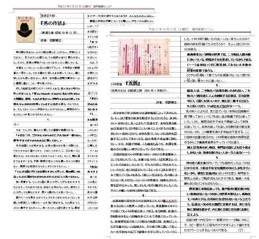これは本の読み方について書かれているが、書評の読み方にもそのまま当てはまる。自分の体験と知識に照らし合わせて考えるきっかけにするのがよい読書である。そのコツを摑みたいなら、他人の書評を読み自らも書評をしたためて仲間内で発表するのがいい。
