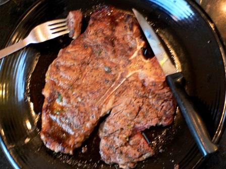 焼肉に満足しながらも、ステーキとは名ばかりの薄いのを食べていた頃を回想しては、ステーキで「失地挽回」せねばという思いも強かった。100グラムや200グラムなどとケチなことを言わずに、分厚くて大きいのをレアで喰らう。数年前にロサンゼルスの親類宅で出されたステーキ。それは野趣の風味が強い歯応えある肉だった。なにしろ推定600~700グラムだ、平らげた後の達成感は半端ではない。以来、サシの入った肉を遠ざけるようになった。口に入れた瞬間とろけるような200グラムのステーキに大枚をはたく気がなくなった。ぼくは肉のうまさと値段から実に多くのことを学んできたと思う。