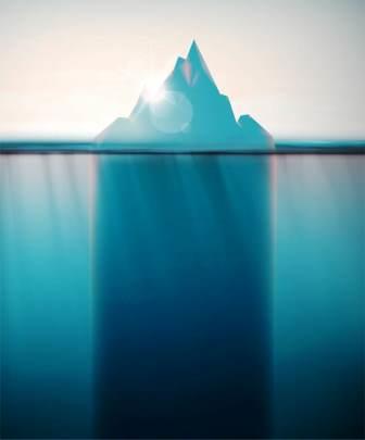 海面上に現れている氷山は全体の一部分、だから、姿を現わしている氷だけを見て氷山の全貌だと早とちりしてはいけない。このことは小学校で教わった。実物の氷山を調べてみるわけにはいかないので、コップに塩水を入れて氷を浮かべてみたことがある。たしかに……。一角が全体の約10パーセント、すなわち一角の9倍の大きさの氷が海面下に隠れていることを一度知ってしまえば、一角を以て全体を類推することができる。そして、その類推は正しい。